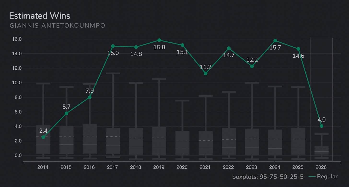 But average players don’t tell us much about such an exceptional athlete, champion, and MVP. You get to Giannis-level sustained productivity by solving a lot of problems that trip up even other professional athletes. Giannis is not only a superstar but one who still, at age 31, has the potential to join LeBron James as a very rare superstar who avoids catastrophic injury in his early 30s. His diet, his training, his offseason regimen, his sleep, his ability to read the defense … it’s probably all better than average in a way that makes average stats inapplicable. (And, not for nothing, an average NBA career would have ended a long time ago.)