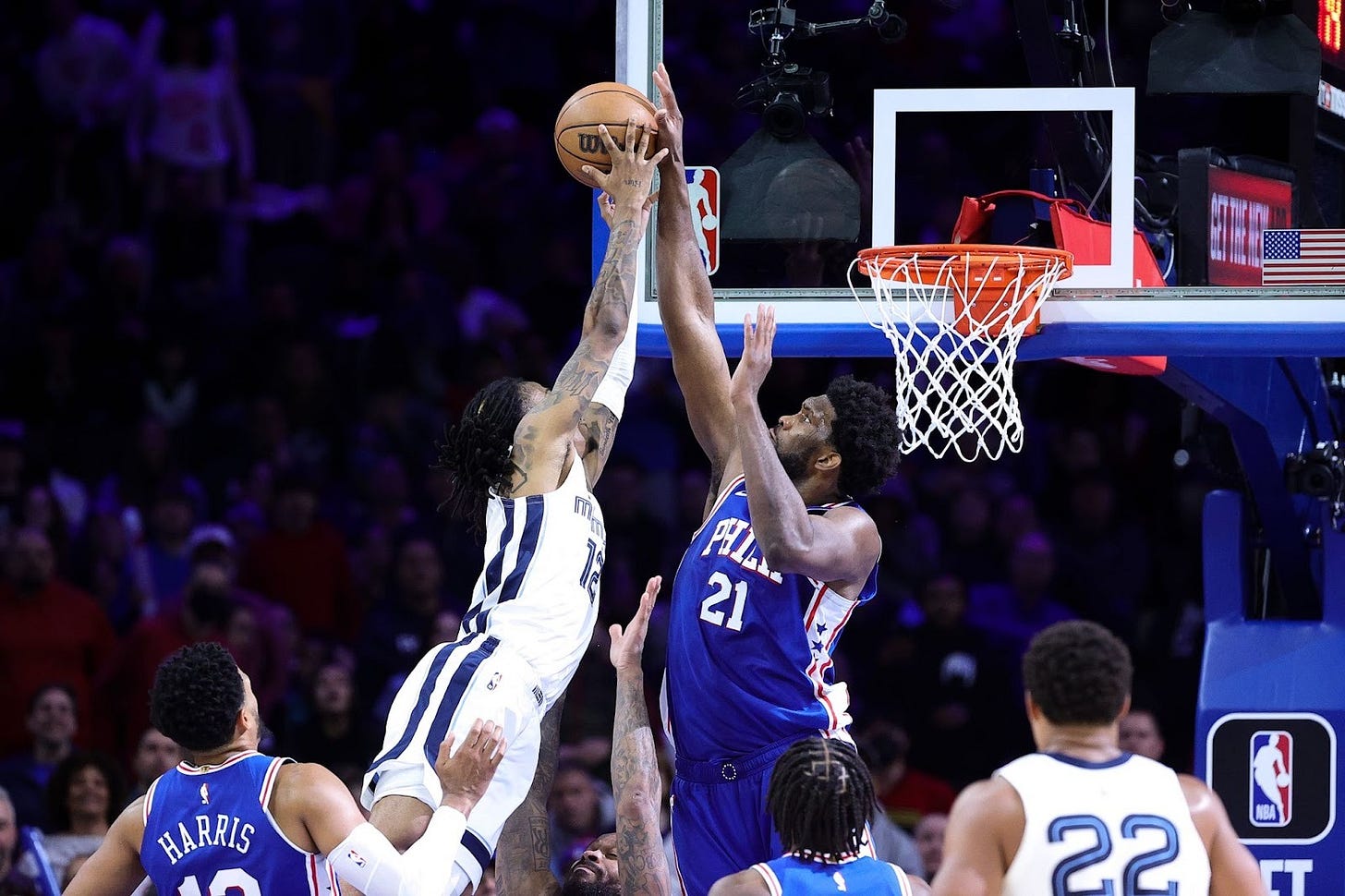 So I don’t take Ja Morant lightly. If the most powerful thing sports can do is make anything seem possible, then Morant might be the MVP. Whoever’s supposed to be in charge–Taylor Jenkins, Adam Silver, Joel Embiid in the photo above–Ja treats with immense and obvious disdain. Ja has a “beneath no one” tattoo, and he lives like it. He has scaled a very tall mountain–to NBA All-Star–doing almost every little thing his own damned way. The beat writers and commentators who are so sure he should get with the program have never been anything like so successful. He’s a legend.