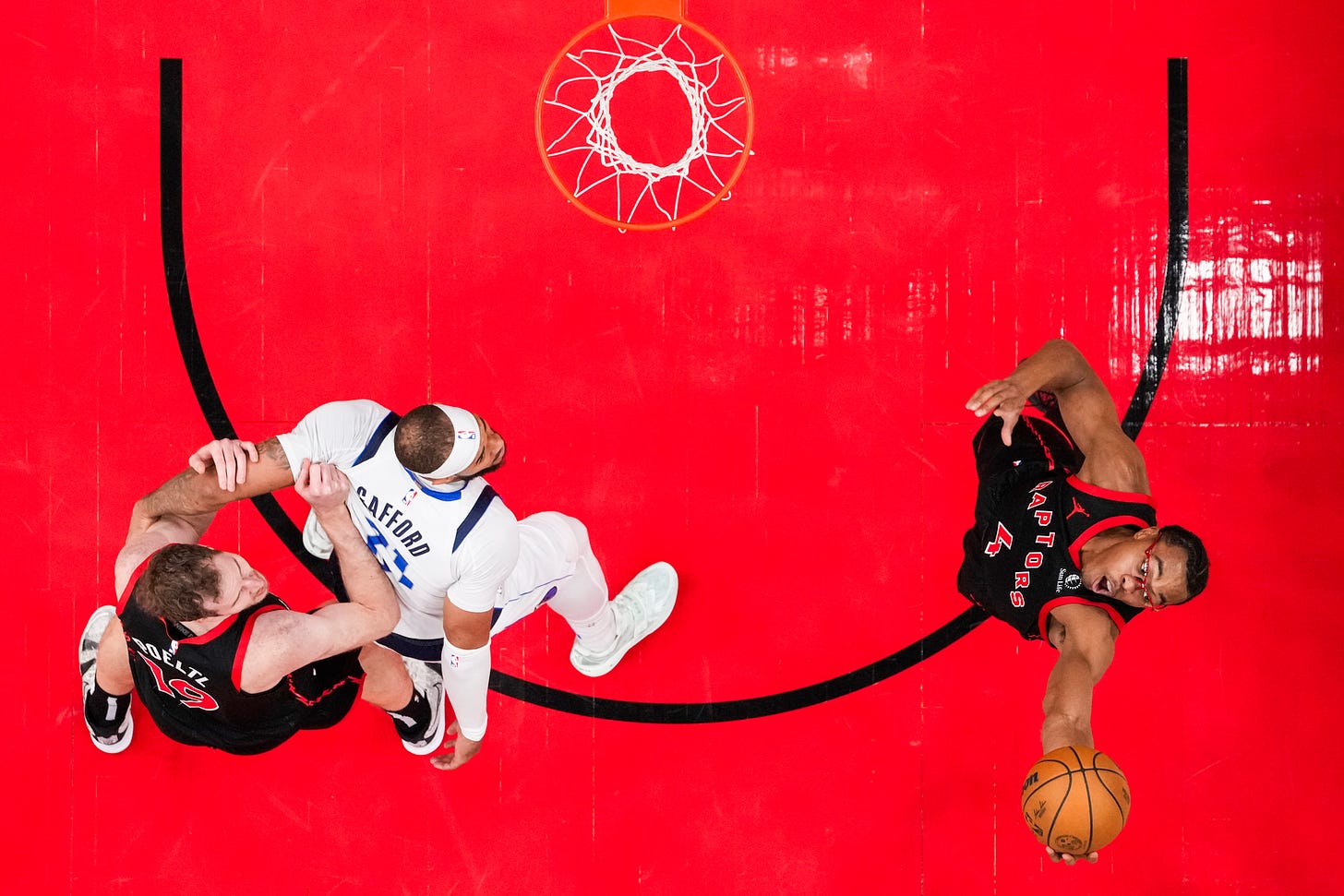 See what the Raptors did here? The game’s going to be far more intense. It’ll show up all over, as we recently wrote, with many teams unafraid to press and trap in the full court, as in this case where three Raptors defenders are on the ball to force a turnover. Amazing! And new to the league in second quarter action!
