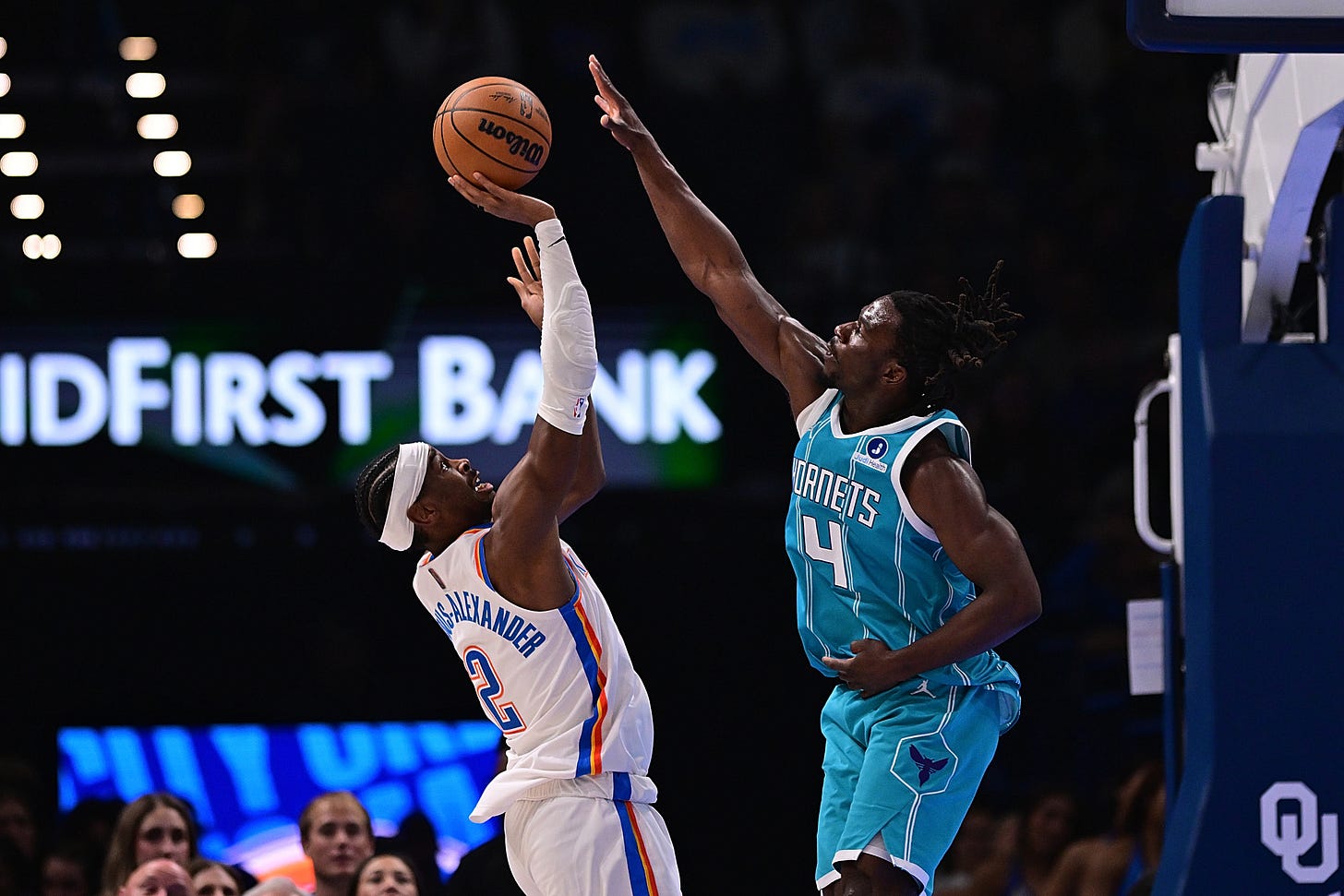 Then 210-pound Moussa Diabaté outrebounded the Thunder’s tiny front line. After Kon Kneuppel nailed this 3, the rout was on. The Hornets outscored the Thunder 32-21 in the third, and won by 27.